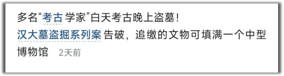 “汉大墓盗掘系列案告破,背后大佬涉及多名‘考古专家’。”