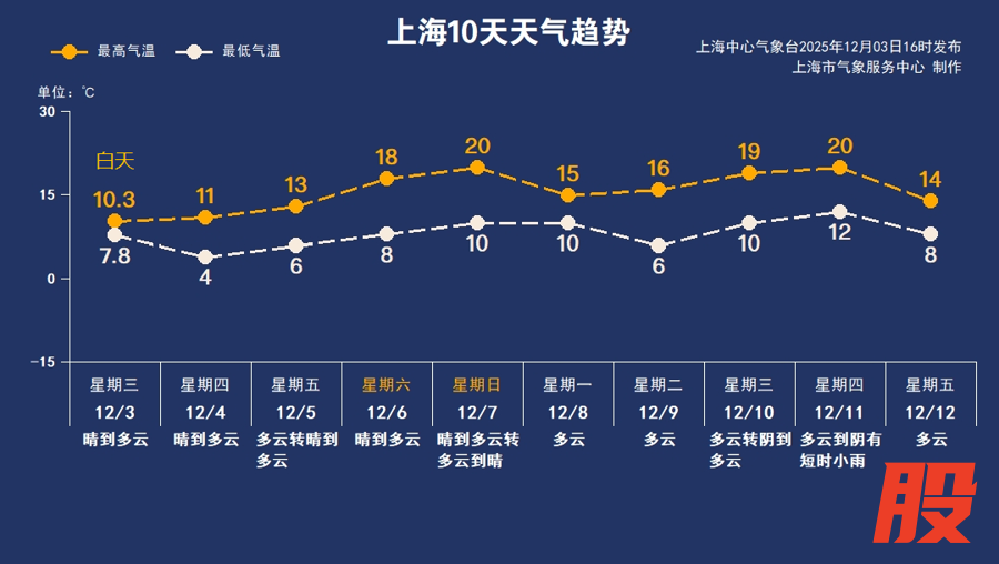 昨天夜间至今天(12月3日)下午,申城陆地阵风达6-7级。气温明显下降,市区徐家汇站最高气温仅10.3℃。傍晚后气温进一步走低,风寒效应下,体感更加寒冷。